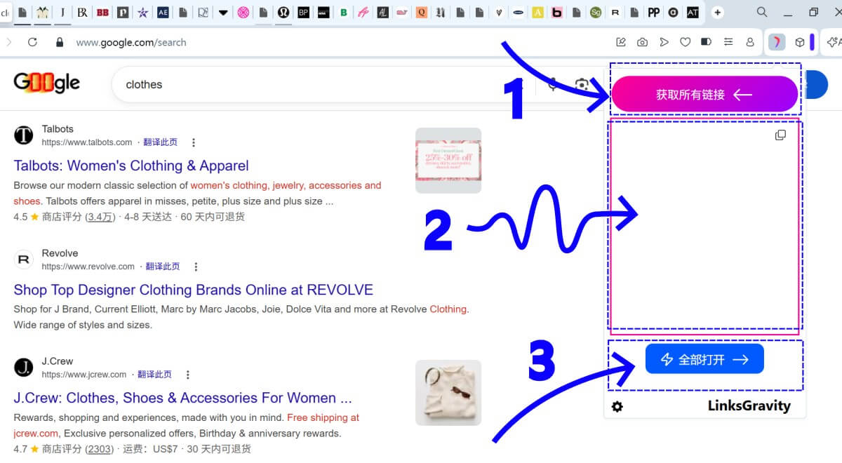 请前往 LinksGravity 谷歌插件 在 Chrome应用商店 上的官方地址 安装,建议使用 Chrome 浏览器,360、qq 浏览器可能无法正常使用此插件。