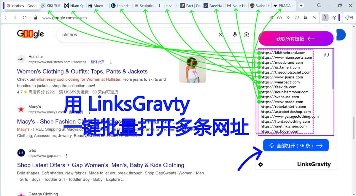 如果您自己从其它来源已经有一批网址,也可以直接复制粘贴到 LinksGravity 文本编辑框中(按行划分,每行一条网址,无需分隔符),然后点击按钮“全部打开”。