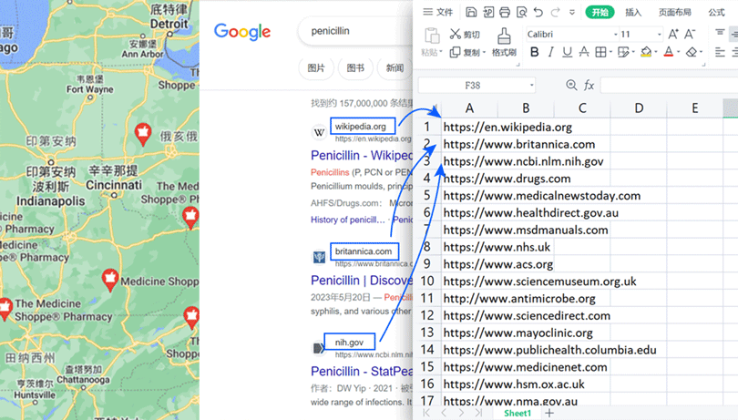 将找到的客户官网,统一整理到一个 Excel 或文本文档中(如图)
